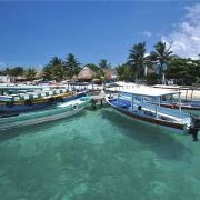 从坎昆的酒店区往返女人岛,可乘帆船,但大多数游客乘渡轮。从坎昆到女人岛,坎昆通常有三个渡口,A、B、C。