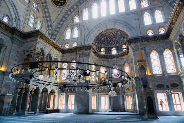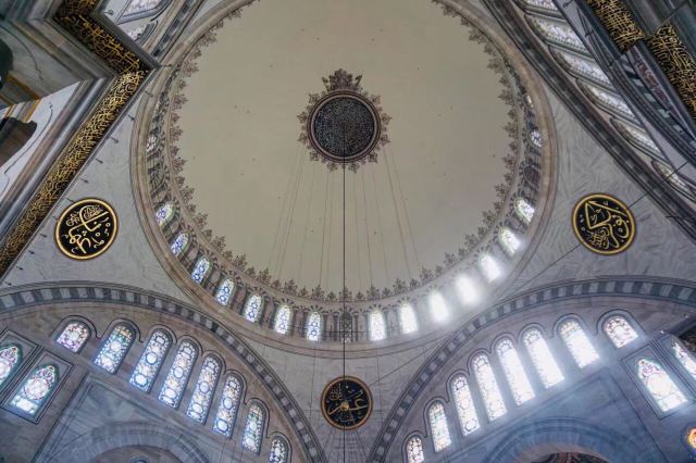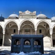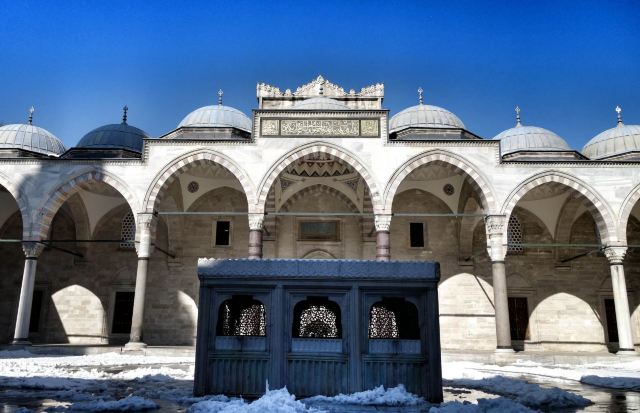 苏莱曼尼耶清真寺位于伊斯坦布尔市内,其宏伟的建筑群建在复杂和陡峭的第三山丘上,使用了出奇的建筑方案,将山丘和周围的街巷结合到一起。这里也被为奥斯曼帝国“富丽堂皇的纪念碑”。