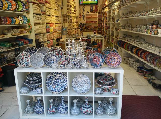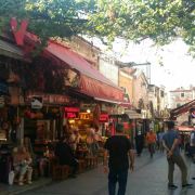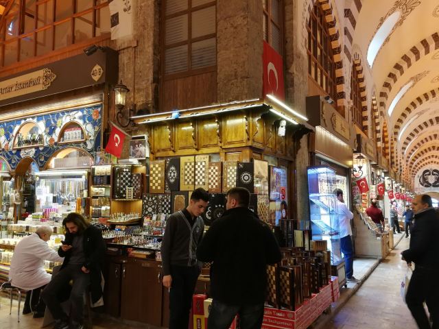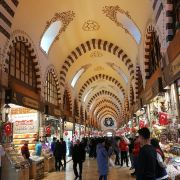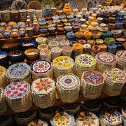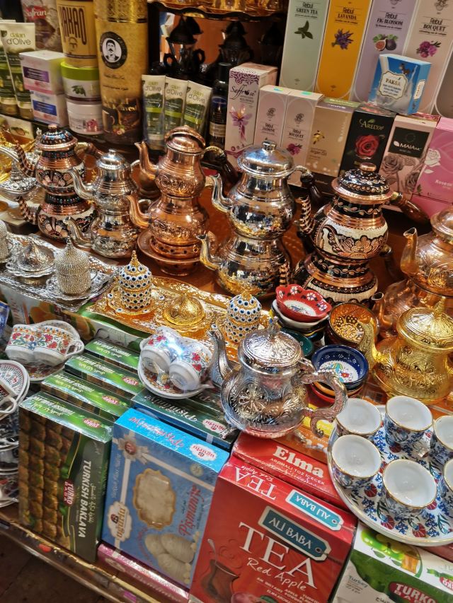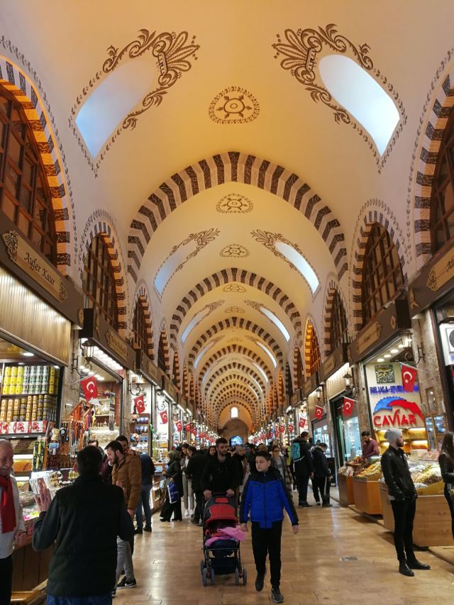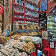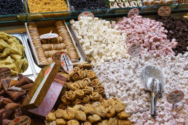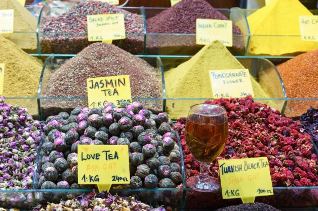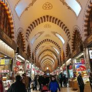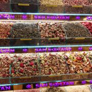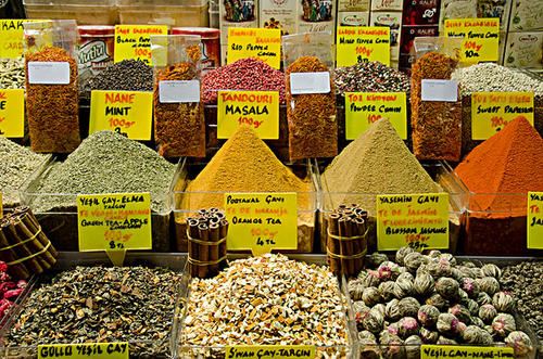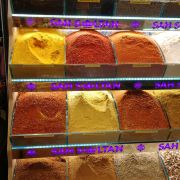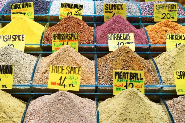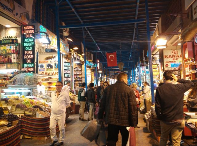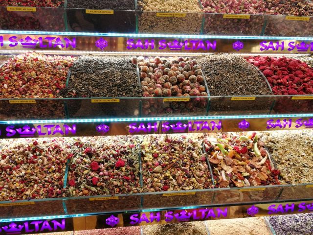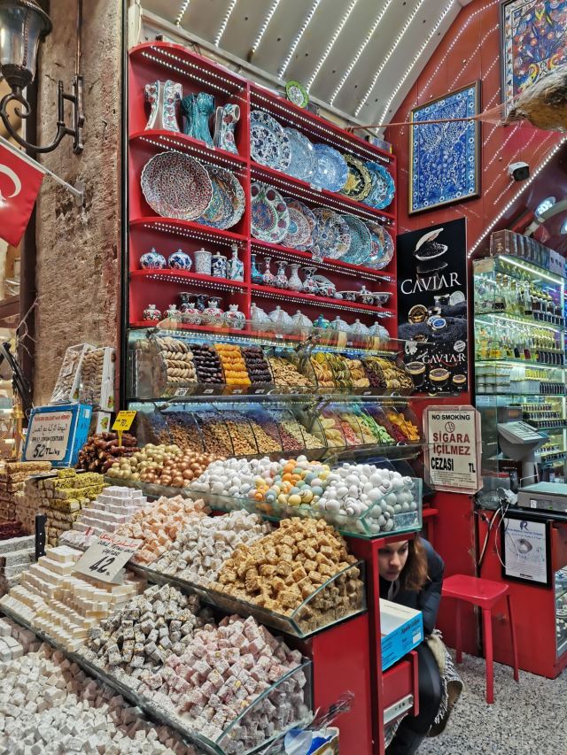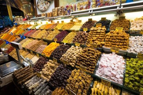 香料市场也叫埃及市场,是伊斯坦布尔大、古老的香料市场,建于17世纪60年代。如今这里除了有种类繁多的香料,也出售货品齐全的旅游纪念品,而且相比大巴扎来说要更为便宜,值得花时间细心选购。种类齐全的香料市场位于金角湾加拉塔大桥的南侧,是个“L”型的建筑。市场有多个出入口,上百家店铺,各种土耳其的调料和天然草木都能在此找到,甚至还有中国厨房里不可或缺的花椒、大料、茴香、孜然等。购买干果等食品除此之外还有粒大饱满的开心果、花生等坚果,以及奶酪、果酱、腊肉、甜品和香气扑鼻的烤榛子等。很多热情的店主会从大袋子里铲出一堆让游人免费品尝。通常在香料市场购买干果价格要比商场便宜一点。另外,茶种类也不少,除了普遍的苹果茶,还有柠檬茶,有茶叶式的,也有冲泡式的。挑选纪念品如果对香料不是很感兴趣,也可以买些小香料礼品包,颜色鲜艳、价格不贵,不失为送礼的好选择。当然,各种工艺品和旅游商品也琳琅满目,令人目不暇接。