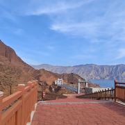这里群峰突起,山势奇特,林木苍翠,泉水淙淙,景色十分壮丽。寺院的东北面矗立着一座巍峨陡峭、象华山一般奇绝的南宗峰,她的北面有一条唯一能够达到顶峰的石阶山径,大部分是从悬崖上开凿而成的,山径从悬崖上斜穿而过,有的地段几乎是从悬崖上直上直下,犹如攀登云梯一般险峻。从石径登上顶峰,便可看到一座掩映在苍松之中的古刹,这座古刹是由五所小石窟组成的,这些石窟有的自然形成,有的则为开凿而成,窟门经过修茸,飞檐依山,雅致幽美。登南宗峰远眺,壮丽的坎布拉景色一览无余。