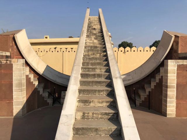 简塔·曼塔天文台是斋浦尔城建造者萨瓦伊·杰伊·辛格二世Sawai Jai Singh II的杰作,他在斋普尔、德里、瓦拉纳西等地一共修建了五座天文台,斋普尔是规模较大的。碧绿的草坪上,散布着众多奇形怪状的砖砌建筑,以及世界较大的日晷,每个都有特别的用途,观测设施体现出古代印度人民的聪明和智慧。