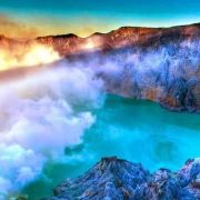 伊真火山位于印度尼西亚爪哇岛东部,以其壮观的火山活动和美丽的自然环境而闻名。作为一个活火山,伊真火山不仅吸引着地质学家和冒险爱好者,也为普通游客提供了一个探索自然奇观的机会。游客可以在黎明时分徒步攀登火山,欣赏日出时分的壮丽景色。火山口内的硫磺湖是世界上较大的酸性湖泊之一,其湛蓝的湖水与周围的硫磺烟雾形成鲜明对比,令人叹为观止。