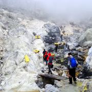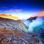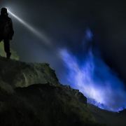 伊真火山以富含硫磺而著称,硫的纯度极高,当火山喷发时会形成大量蓝色的岩浆,宛如地狱之火喷薄而出,我们称之为“地狱蓝火“,想要一睹其惊艳,也是需要极大的毅力。因为只有夜晚才能看到蓝色火焰的奇观,我们到达Paltuding营地后到火山口约需4小时左右,整条徒步登山道非常原始和陡峭,山路越往下越陡峭,没有显著的标识,只有一条路走到底,更没有什么索道和缆车之类的,只能靠自己的双脚和无限的期待支撑你前行的步伐。夜间行走一定带上手电,穿上厚衣服,口罩或防毒面罩更是必备的,沿途尤其是快到火山口时硫磺的气体四处弥漫,熏得人睁不开眼。切记走路不拍照,拍照不走路。
