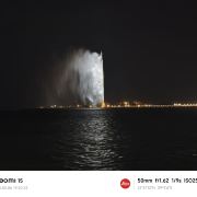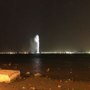 天黑之后,喷泉的数百盏灯便会亮起,高空下落的水流形成拱弧。人们会在夜间三三两两地聚到吉达海滨路,欣赏喷泉从天上坠落海面的迷人景色。