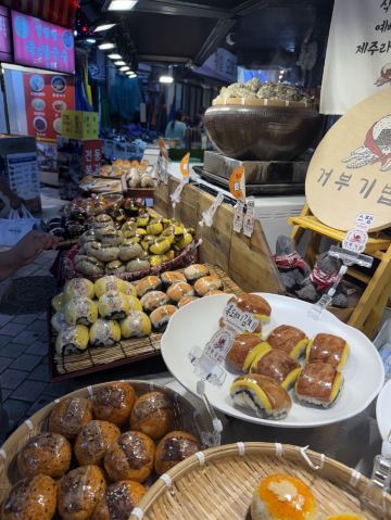 东门市场是济州岛特别热闹的市场之一,面积不小,主要分为了几个区域,有水果区、海鲜区、特产区等。济州岛的各种特产以及特色伴手礼都可以在这里买到,各种橘子、巧克力、小吃、海鲜、泡菜等等,都可以在这里找到。这里的橘子、巧克力等等比超市以及免税店的价格要便宜一些,是个采买伴手礼的好地方。