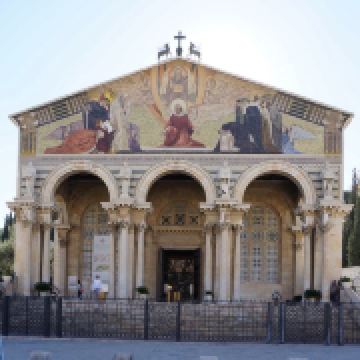 万国教堂本名苦闷教堂(Basilica of the Agony),位于耶路撒冷城东部的橄榄山。 是耶稣在被捕前晚间祷告的地方。教堂建于1919年到1924年,使用了12个不同国家的基金,这也是其常用名万国教堂的由来。园内有耶路撒冷最古老的橄榄树。