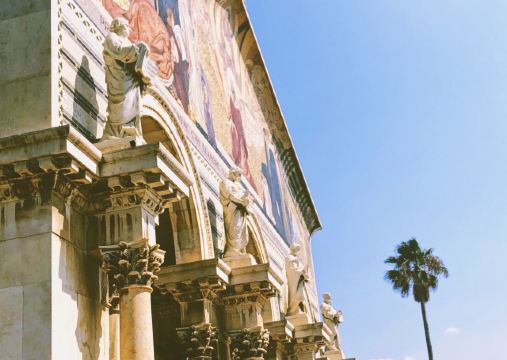 现存教堂是建在两座古代教堂的基础上的,它们分别是12世纪十字军教堂(1345年废弃)和4世纪的拜占庭教堂(毁于746年地震)。