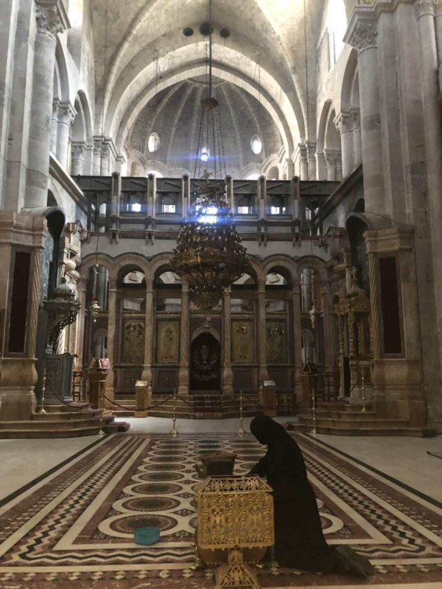有许多虔诚的教徒,把信物放在石床上擦拭。更多的人则是长时间跪下亲吻这块说是浸透着耶稣的血的石头。