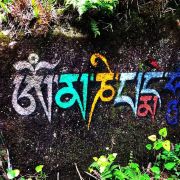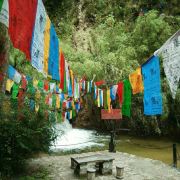 山中珍贵名木较多,有许多不知名的花朵和果实到处可见,当然富有藏族气息的经幡经语还是到处可见。
