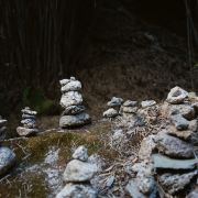 6、景区内随处可见石堆,是藏传佛教信徒祈福的方式,导游会告诉大家祈福方法和注意事项,例如只能放单数石子,以及不能拿走石子否则会倒霉等等。