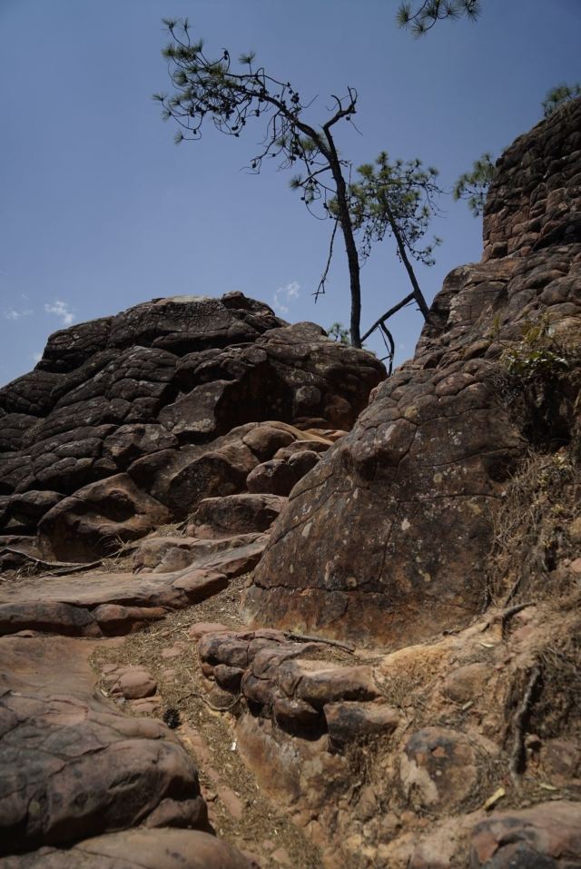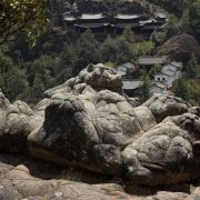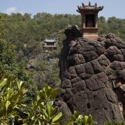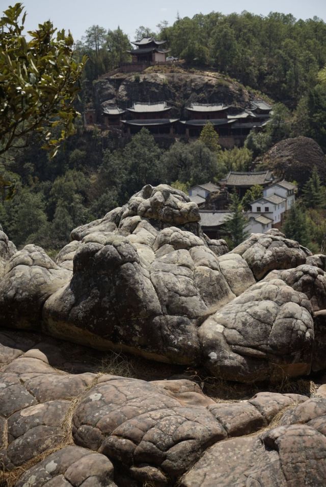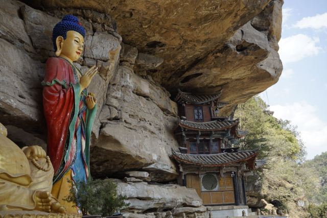海云居前行约1.5公里即达宝相寺。寺庙始建于元代,位于一堵高耸险峻的大石崖上,依山而建,下层是大殿,二层为寺观,凿石抬梁,颇有悬空寺的味道,故被称为“云南的悬空寺”。从宝相寺继续步行上山,约半小时即可抵达稍显落败的金顶寺,两寺都是有悠久历史的古寺庙。