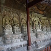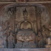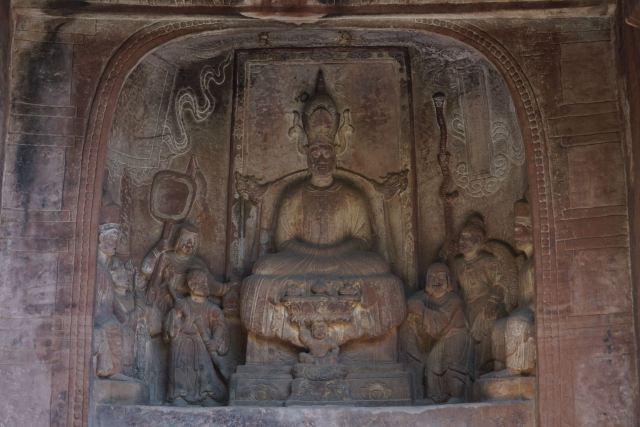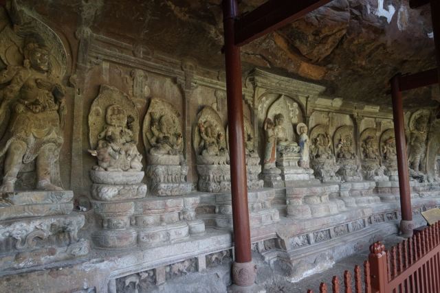 从宝相寺到可参观石窟的石钟寺约7公里,沿着山间公路走到尽头既是。石钟寺面积不大,因院中有块巨大的菜花状红砂岩形似倒扣的大钟而得名。石窟即位于寺庙后的山上。石窟是南诏时期白族所创,是云南现存规模大、保存完好的石窟群,共有16窟,浮雕造像139座,形态各异,栩栩如生。其中7号窟的甘露观音造像,素有“东方维纳斯”之美誉。而形似女性生殖器的“阿央白”石窟更是令游人惊叹,至于生殖崇拜为何与佛教造像一起祭祀,至今仍是不解之谜。