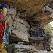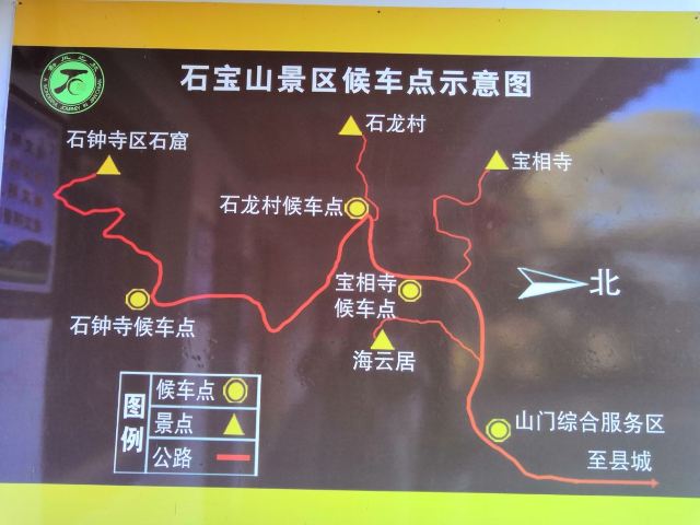 景区内的各个景点有公路串联,景区里有付费区间巴士。从景区大门进入后前行约200米,左边的石阶既通往清净佛寺海云居,海云居大殿里的壁画值得驻足流连。
