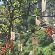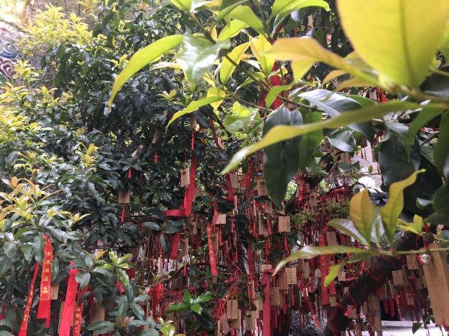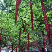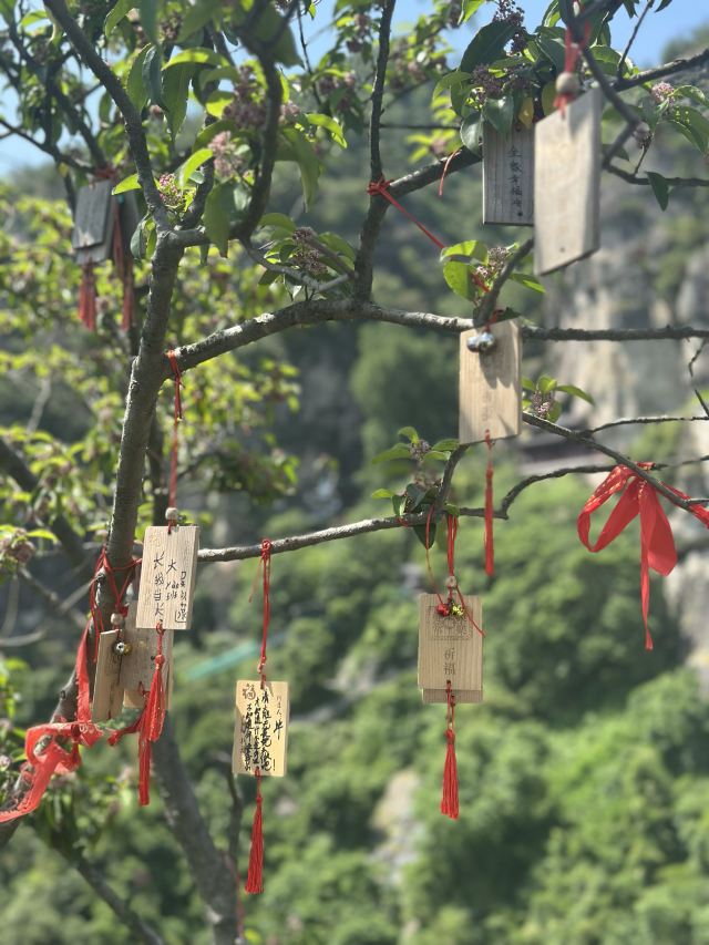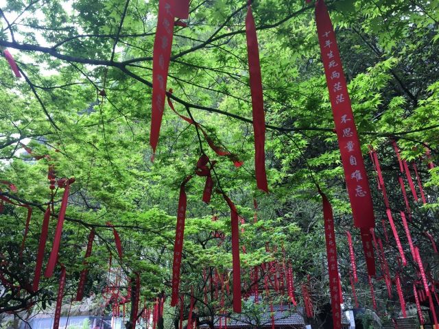 双面佛和大慈岩风景区-地藏王大殿是一大亮点,游人可以顺着栈道一路走到双面佛像跟前一睹真容,也可以去到大慈岩风景区-地藏王大殿祈福。天门背后的的樱花树下,枝桠上挂满了人们祈福的红丝带,透着佛门的清幽气质。罗汉堂中的造像也颇有张力。