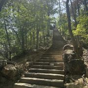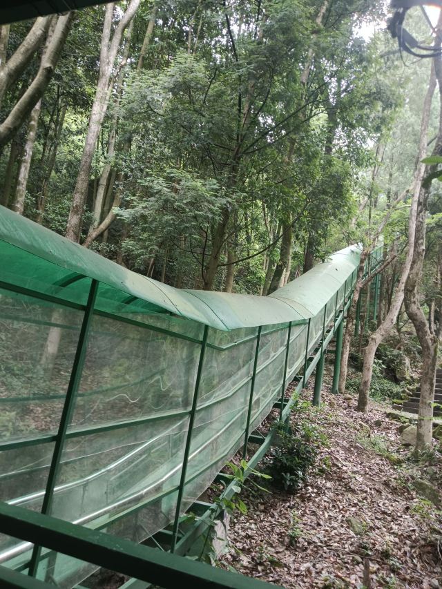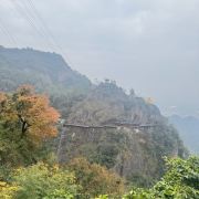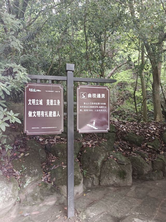 在大慈岩风景区-地藏王大殿参观完后出庙门,右手边有步道下山(约30分钟)。步道比较隐蔽,找不到可以问问工作人员。下山路的风景也不错,有溪流相伴。10月份银杏黄时,景致更有韵味。若要索道下山,则需原路返回索道上站。