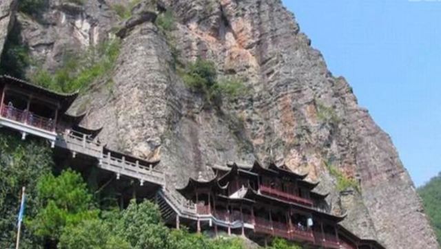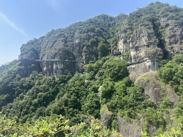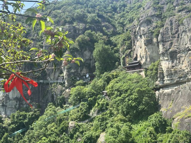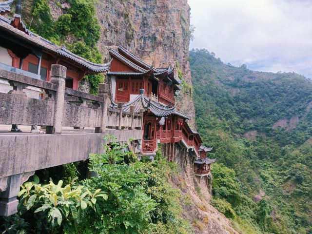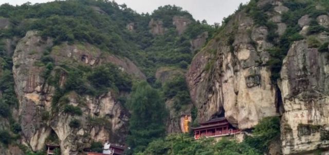 微信小程序大慈岩风景区位于建德市南面24公里处,山上有金闪闪的双面佛像,半山腰的寺院建筑一半嵌入岩腹,一边凌架悬空,和恒山悬空寺有异曲同工之妙,因此也被称为“江南悬空寺”。