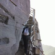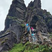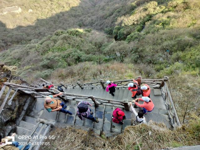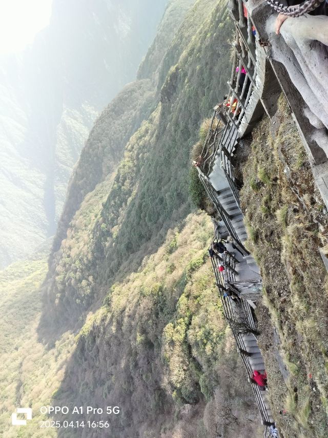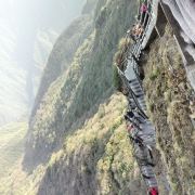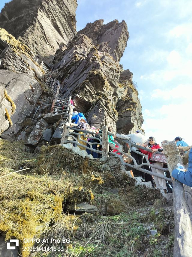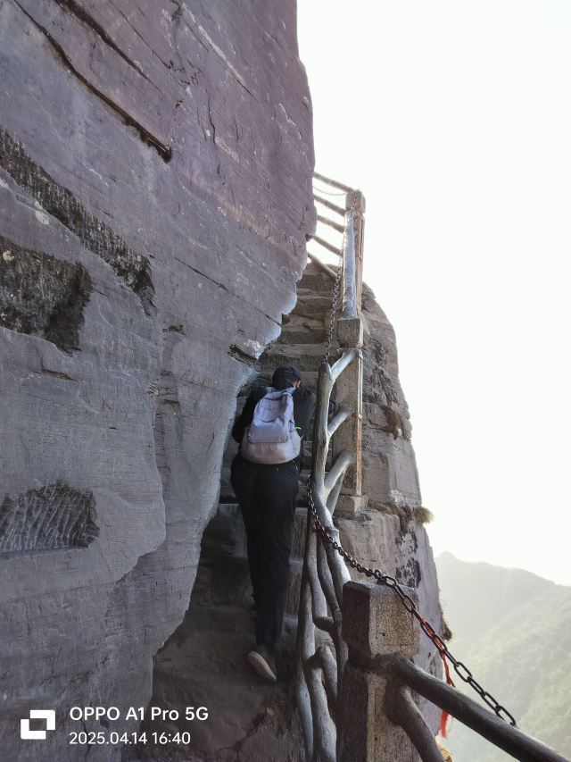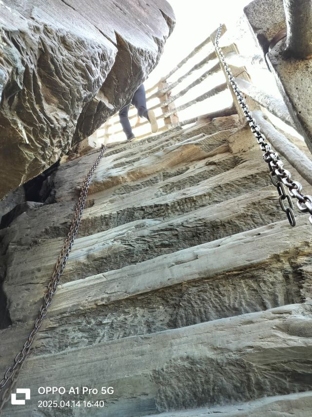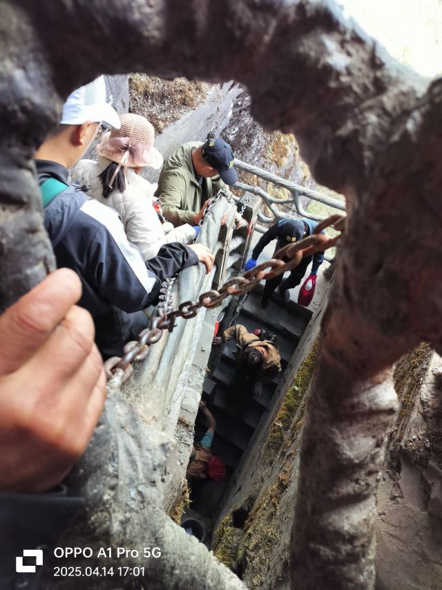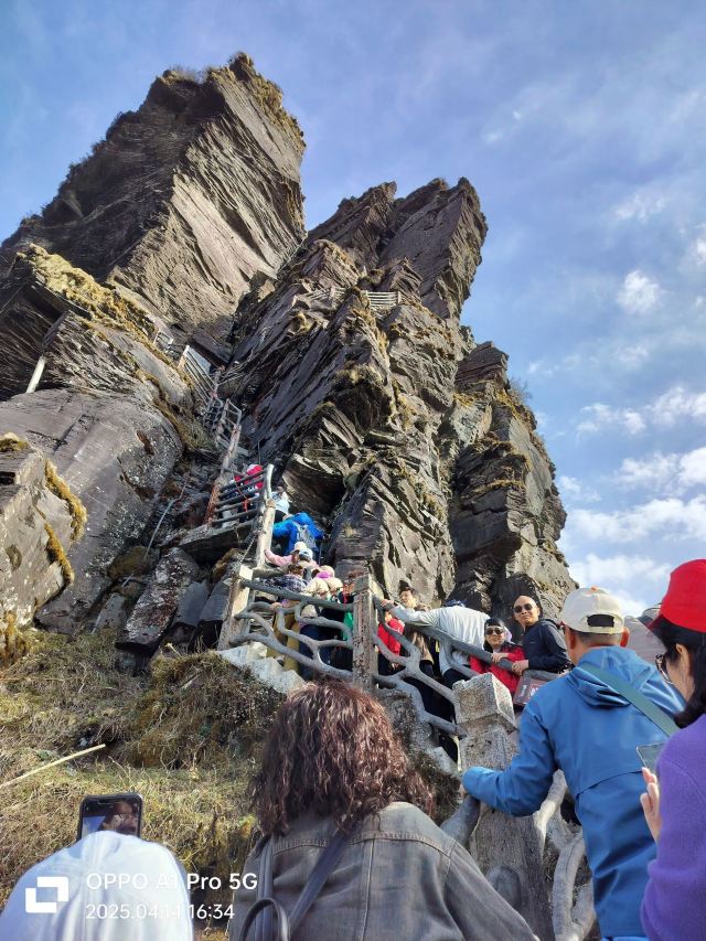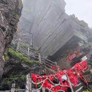 险峻奇绝的攀登体验 :红云金顶海拔2336米,从峰脚到峰顶垂直高差94米。攀登时需踩着绝壁上开凿的石阶,借助铁链手脚并用前行,最险峻处近乎90度垂直,且路径狭窄,仅能容一人通过,极具挑战性,能让游客感受到“无限风光在险峰”的意境。