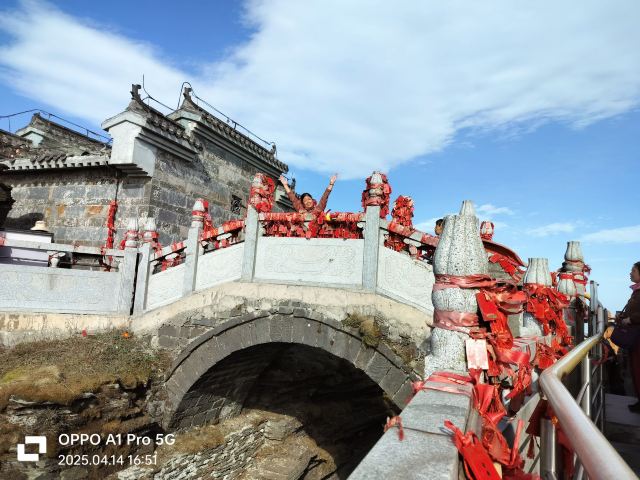 5分 超棒一直心心念念想去,终于如愿所致。进景区小雨,上山雨停,到蘑菇石烟雾缭绕的感觉,远处红云金顶若隐若现的,仙境一般。越走进红云金顶越来越壮观,真实可见。早去爬不用排队没什么人好拍照也好攀爬,上山路比较难走有的地方直上直下的。需要拉着铁链子使劲儿上行,不过体验感很好,很有成就感。经过努力一线天,天桥,弥勒道场,释迦道场拜一拜,恍如仙境,美轮美奂。下山还好一些,值得一来。天空之城,梵天净土。