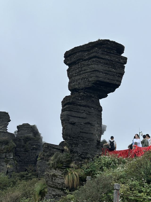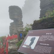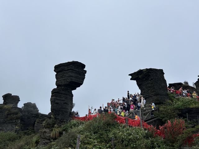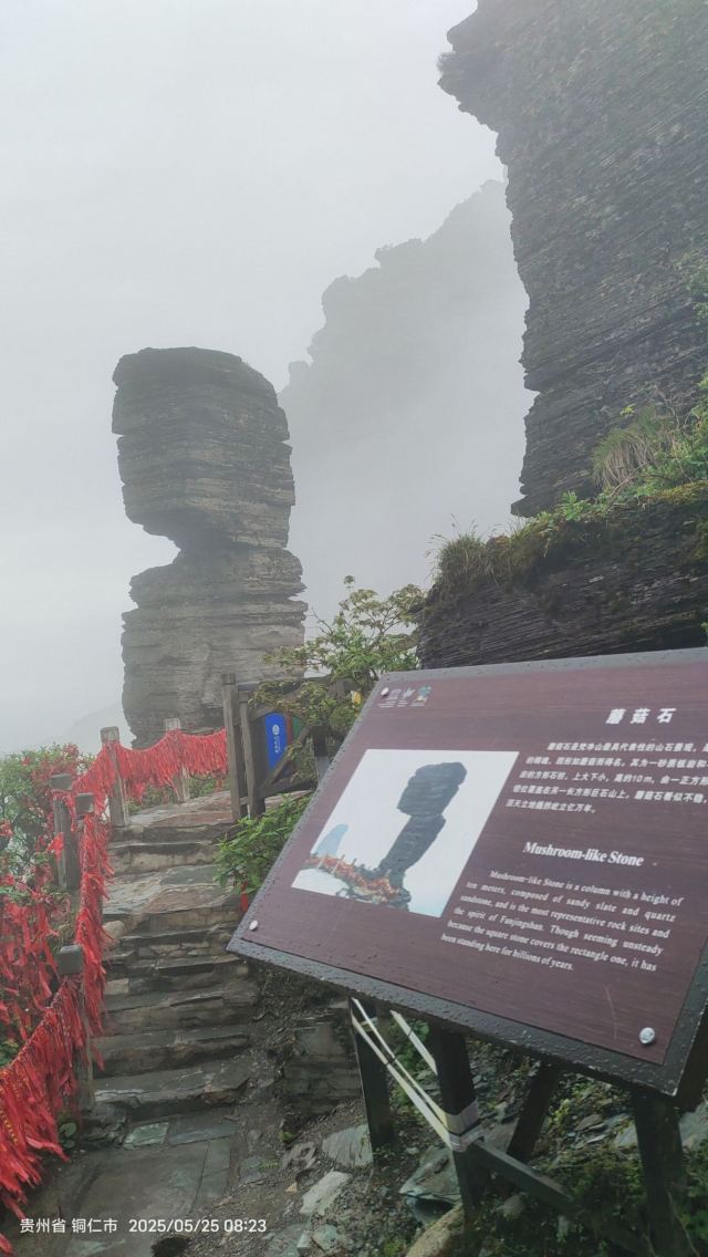 还有,蘑菇石这处景点是梵净山主要景点的交汇处: 站在这里,可以远眺四围群山,近观老金顶和红云金顶、拜佛台、普渡广场、九皇洞,还可与蘑菇石、翻天印亲密接触,拍照留影。