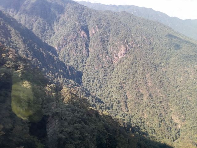 我乘旅游车来到半山腰的缆车乘坐点时,旁边已然是人山人海,把我们团团围在了一起仿佛是在包饺子。当我费劲周折后,终于乘上了缆车。随着一阵机器的轰鸣声,缆车上升了,我们一旁的景物也随着向上移,在高空中,我向下面俯视,哇!……好高!我几乎将整个梵净山尽收眼底,望着高耸巍峨的山、苍翠欲滴的树、正不紧不慢地流淌着的涓涓细流,这种仿佛是诗情画意般的景色,真让人兴奋不已!