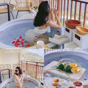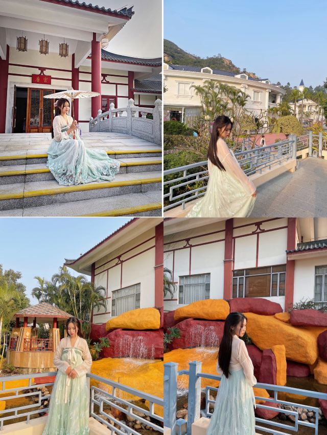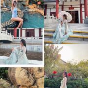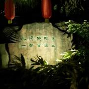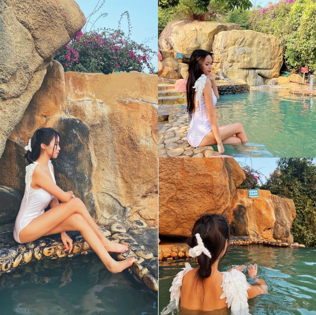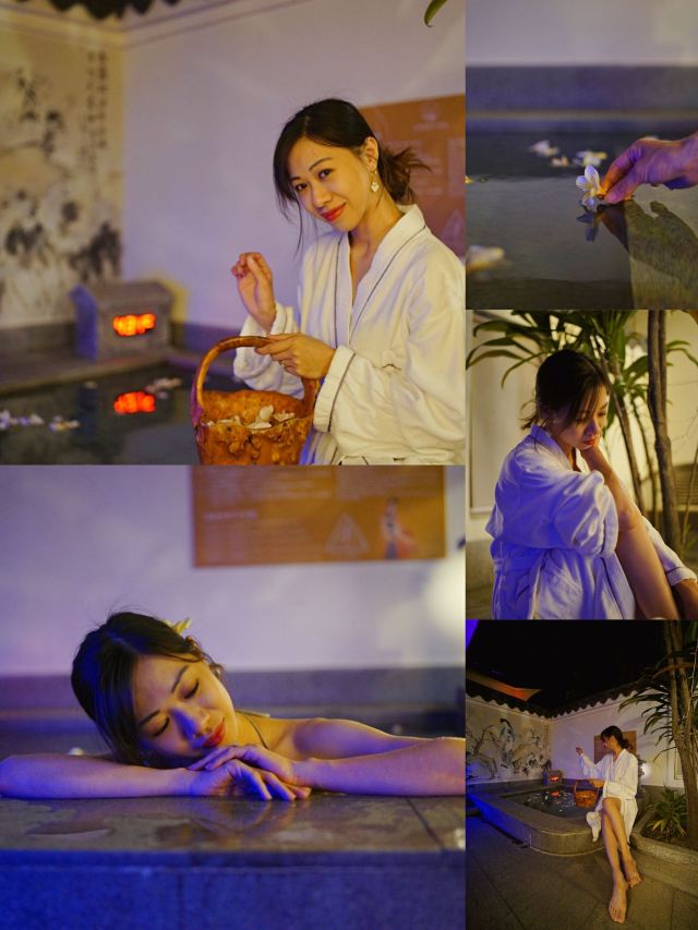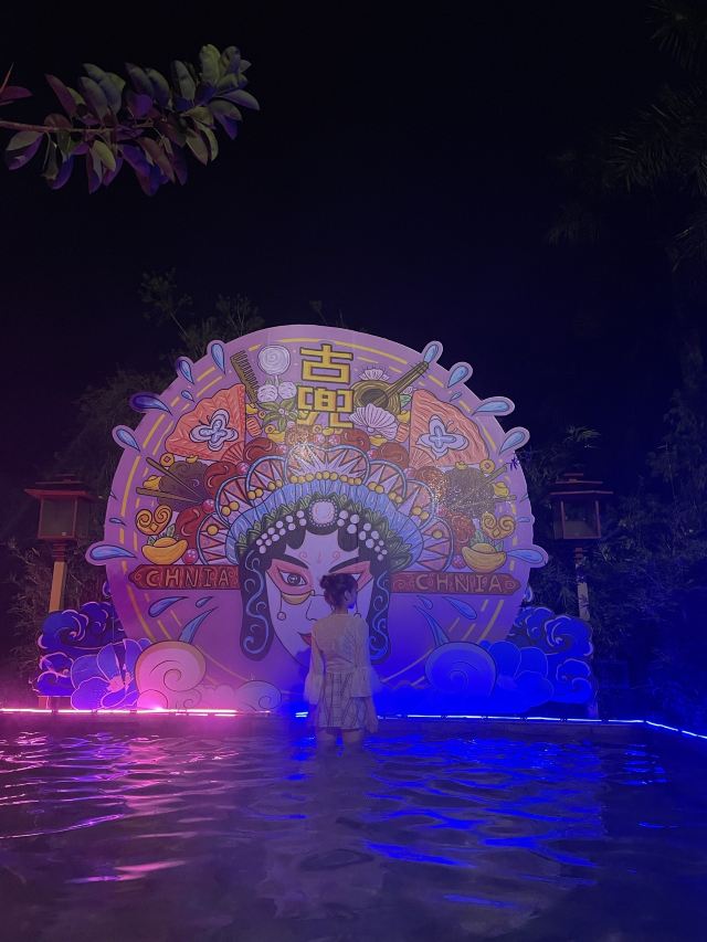 唐宫外,另有9个露天泡池,以木栅围栏营造出古朴的意趣。具有特色的是“八卦池”,涡流奔腾不息。同样引人注目的还有唐宫对面一尊约两米的杨贵妃出浴像,雕像边,建有烫石板,下边有温泉水流过,可以享受热石板浴的感觉。