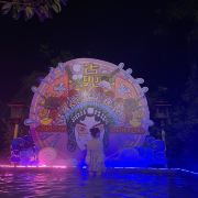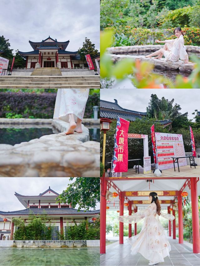 温泉谷中间有一条约150米长的人工鹅卵石河道,它不仅为景区增添了点韵味,更和中间水区的大舞台及各大小泡池相连,将谷内的建筑群落分成了三大区域。北边是欧式风格的“罗马殿”,东边则是日本民间风格的“东瀛阁”,南边是参照中国唐代的华清宫风格建造的“唐宫”。
