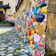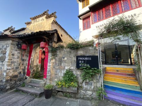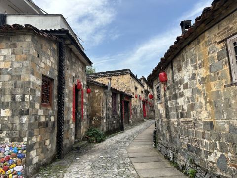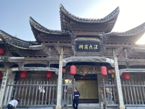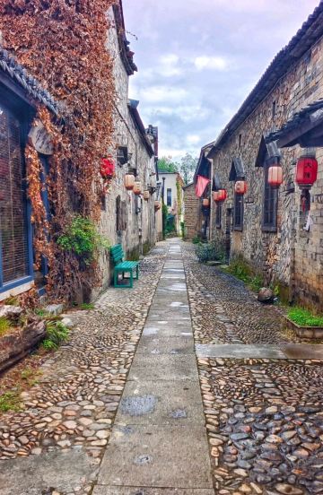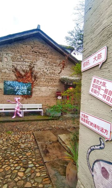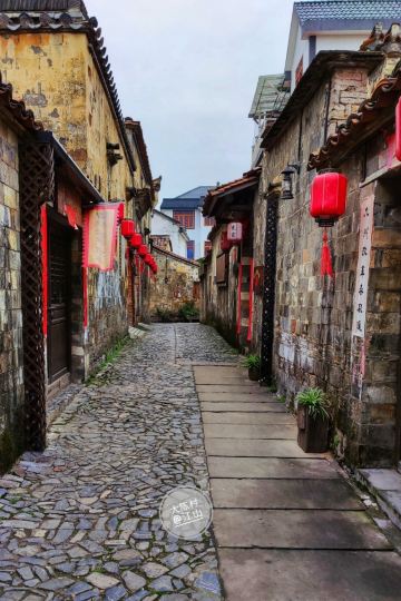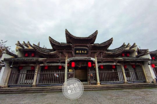 5分 超棒因为大陈村春晚上中央电视台,因大陈村歌触发了乡恋,终于利用休息时间去了江山,在城乡公交调度中心(百度地图上的官方名称),当地人称为老火车站客运站或者大润发客运站,坐上207路中巴车,票价3元即可到达大陈村。进入村口首先是广场及对面雄伟的汪氏宗祠,左手大陈村的陈列馆和戏台,右面是莲花塘。汪氏宗祠保存得非常好,牛木雕精致,是本村最精华的建筑。整个村子的巷道不宽,都是石头拼铺而成,走在其中自然会静下心来,品味返璞归真的意境,这才是我心中的美丽乡村,而不像有些村子以水泥铺路或者水泥与鹅卵石混合成,从而感觉生硬而没有温情。整个村子布局基本没有破坏,保留了小学、中学遗址,绿化也相得益彰,许多房子有围墙封闭的菜园子,种着蔬菜和果树,远比那些取缔了菜园子、房前屋后水泥地更有艺术,生态和谐。在这里也能感受到正能量满满但又不过分。唯一不足的是,虽然有路标指示一些名贤故居,但在具体的故居前没有说明标注,并且上着锁!