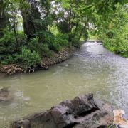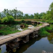 穿过现代的宜居地带,直接走过去古村落的核心区域,就看见村子外围有一条小河围绕着,所以说这边也是一条风水村,就算是在炎热的夏天里面也还是比较的爽快。