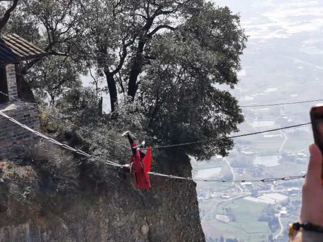 5分 超棒阳光明媚的周末动车江油一日游,市区吃完周肥肠打车前往,到达门口人不多,买了票走路10多分钟到缆车,上山,开敞式缆车感觉有点刺激,10多分钟到达,再走路上山,一直到寺庙风景开始好了,赶到了1.30的钢丝表演,确实不错。