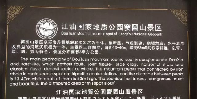 5分 超棒窦圌山位于绵阳市江油武都镇,国家级4A旅游景区,也是国家地质公园,此山以奇、险、幽、秀、绝等特色而吸引中外游客。景区钟灵毓秀,山峰秀美,游客可尽情欣赏奇峰险景,看走纲丝表演,山上云岩寺为佛、道合一的寺庙。