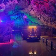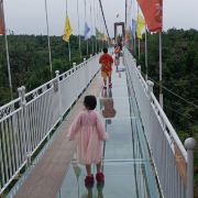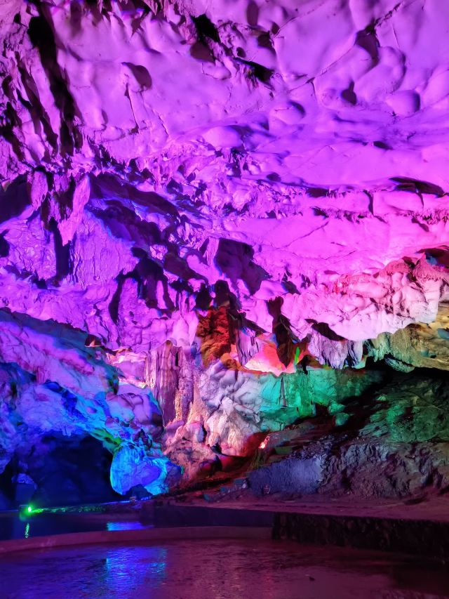 4分 满意三大两小团购了39.9门票加暗河船票三张,溶洞挺大,有三层,带小朋友了解溶洞值得看。暗河乘船景致也很好,出了溶洞已经中午,60元包了一条竹筏,自己划船当船夫,不限时间,体验感很强。在船上吃了点零食补给,我们就没有吃景区里面的饭食。上岸后有个玩水区,免费的还不错。接下来就有点费劲了,半小时的山路,带着俩娃走得大汗淋漓,途径石林鸟语林等地,鸟语林没鸟,没去看。玻璃桥去了,五个人一共花了200元,包括滑梯,有兴趣的,玻璃桥还是可以看看,风景还不错。下上后走不远就是观光车站,10元一个大人,果断乘车返回,走路的话估计20分钟左右,不带老人孩子可以选择走路。总得来说,收费项目还是比较多,但是好在趣味性还比较高,所以花了钱觉得还算值。如果只看溶洞不坐船不划竹筏,可能就会觉得没太大意思了。