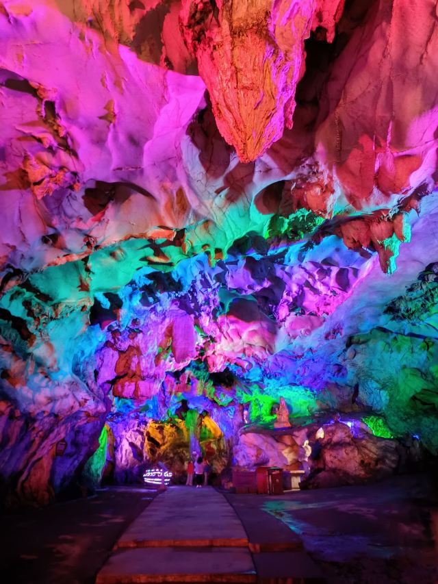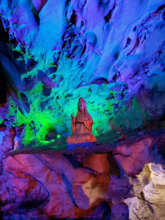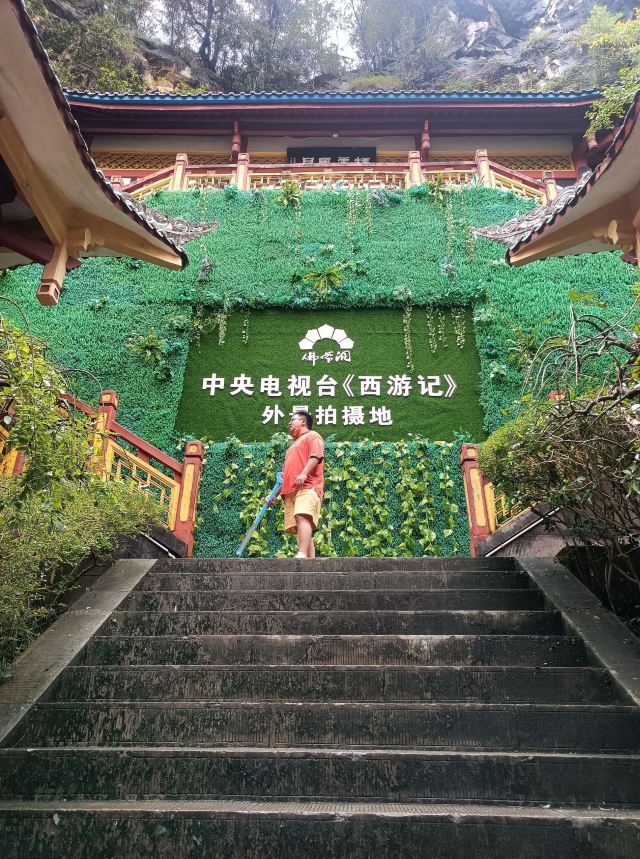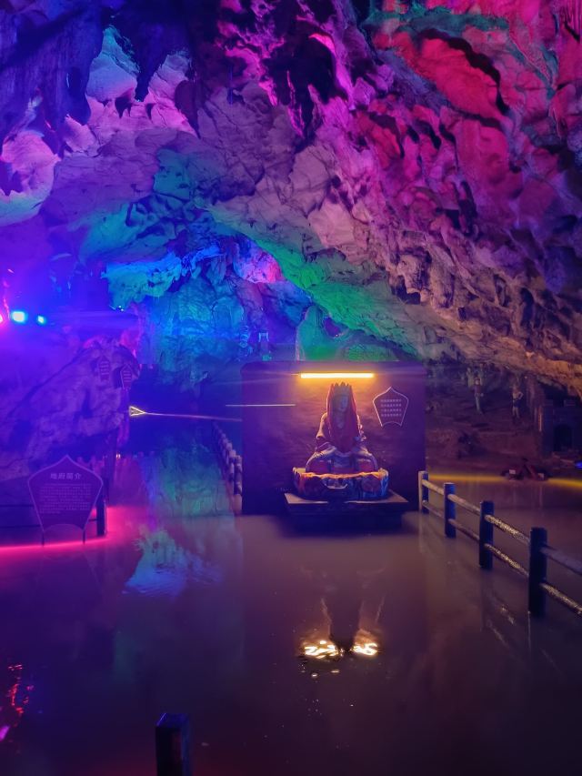3)历史文化。佛爷洞有别于西南很多喀斯特溶洞的地方,贵在文化,西湖没有故事就是一滩死水,佛爷洞没有织金洞的秀美,没有兴文石海的雄奇,没有南川金佛洞的奇诡,能走的远,一是有佛主撑腰,民国时就在洞内发现一石柱貌似佛像,得名佛爷洞,现被移动到洞口涂脂抹粉后就不为人知了,但文化还在、佛性还在、禅意还在;二是佛爷洞被86西游选为取景地,至今洞内大彩电依然滚动播放西游1/2部中佛爷洞的出场画面,妖怪洞窟名不虚传;三是太白仙人留名于此,佛爷洞在匡山脚下,青莲人早年在匡山求学,留下了诸多传世名篇,最著名的当属《访戴天山道士不遇》的“树深时见鹿,溪午不闻钟”,这里的戴天山就是匡山,据佛爷洞山上雷音寺简介,李白当年造访戴天山就是经过佛爷洞旁小径,执杖、背篓、携书、带童子,一脚深一脚浅奔赴的匡山书院。