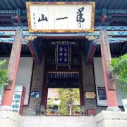 在翠柏环抱的山凹里,卦山的主要建筑星罗棋布,有天宁寺、圣母庙、卦山书院、朱公祠等。古刹天宁寺是卦山众多寺庙中创建最早、规模最大的佛教寺院,寺院内原有释迦牟尼塑像一百多尊,有铁铸、有木刻、有泥塑,均为历代劳动人民的艺术创造。此外,古柏为卦山的一大奇观,如果仔细观察这些柏树,会觉得它们千姿百态,虎头柏、牛头柏、龙爪柏、绣球柏,真是活灵活现,妙趣横生,让人叹为观止。