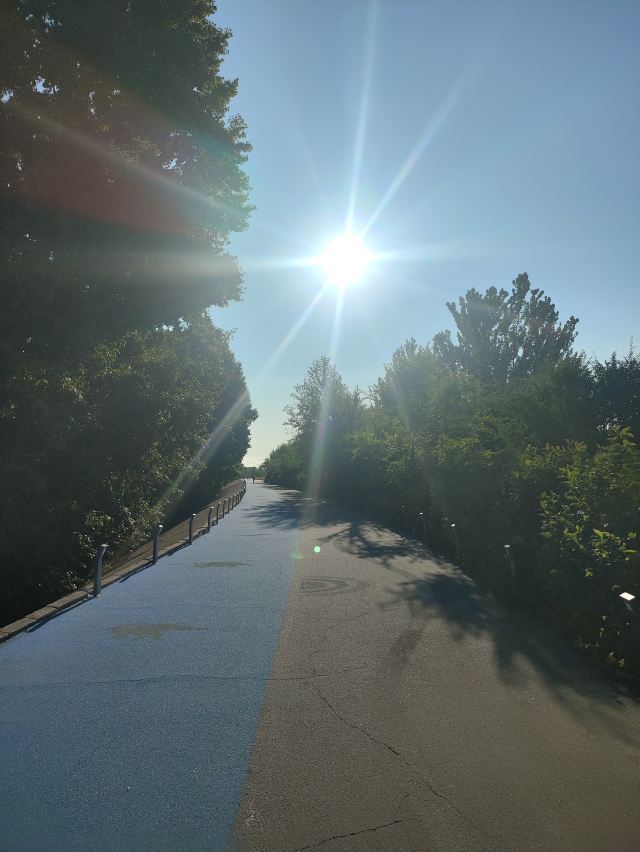 前一晚喝完大酒起来头一点儿不疼,清晨的大好时光不能浪费,到嘉荫的江畔公园走走看看。虽然是八月盛夏,还未出伏,但早晚很凉,已经需要穿一件薄外套了。
