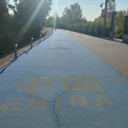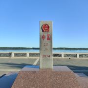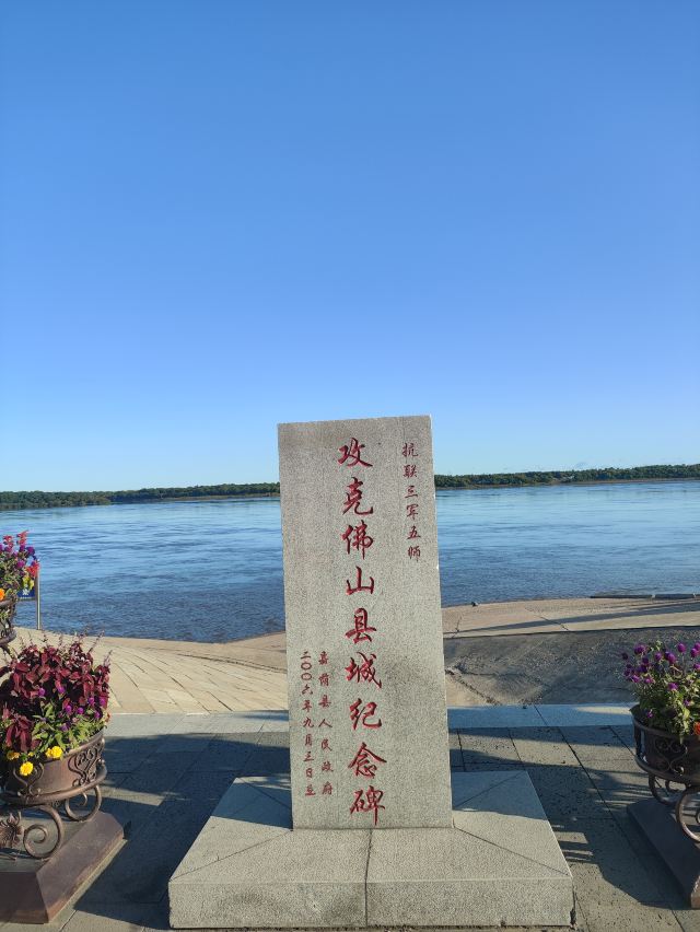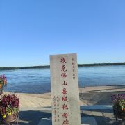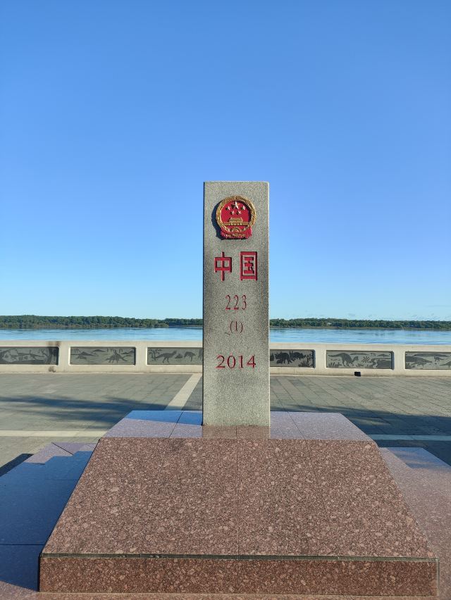看完江景返回雕塑,左转,往东行进,主要的拍照打卡点都在东边。核心打卡点:1.恐龙之乡地标;2.第223号界碑;3.佛山-萨吉博沃国际通道纪念碑;4.抗联三军五师攻克佛山县城纪念碑。往东走到头是规划总长度20公里的滨江绿道,目前完成翻新的部分不到两公里,如果有时间有体力,可以继续走走看看,我们因为吃完早饭还要去汤旺河,到了绿道就往回走了,这样一个来回大约两公里左右,连走带拍照耗时约半小时。