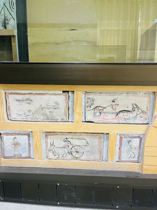 越往下往里走越冷,会感觉有点起鸡皮疙瘩。先看看百度百科更容易理解壁画砖的内容,确实是寥寥几笔但是非常生动活泼。会有工作人员跟着下到墓里,希望选择了来这里参观的朋友们都自觉地不在墓里拍照,让我们一起保护文物呀~