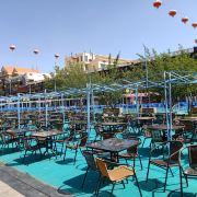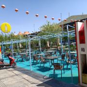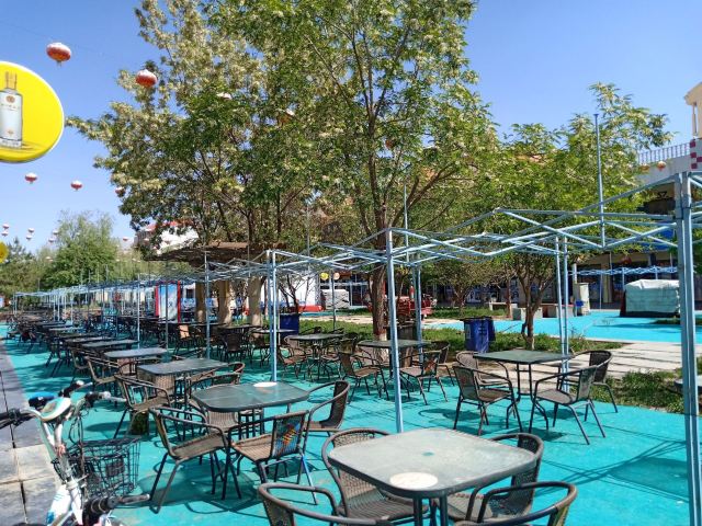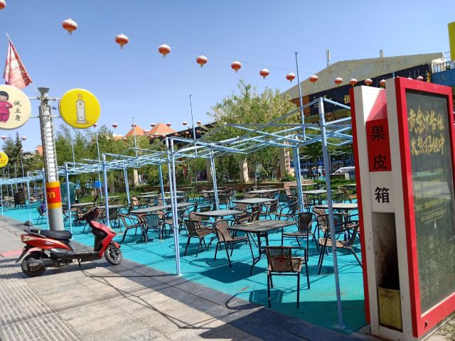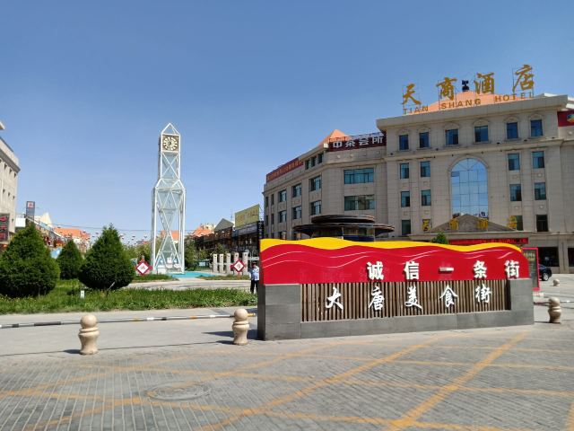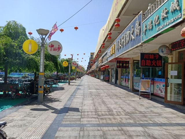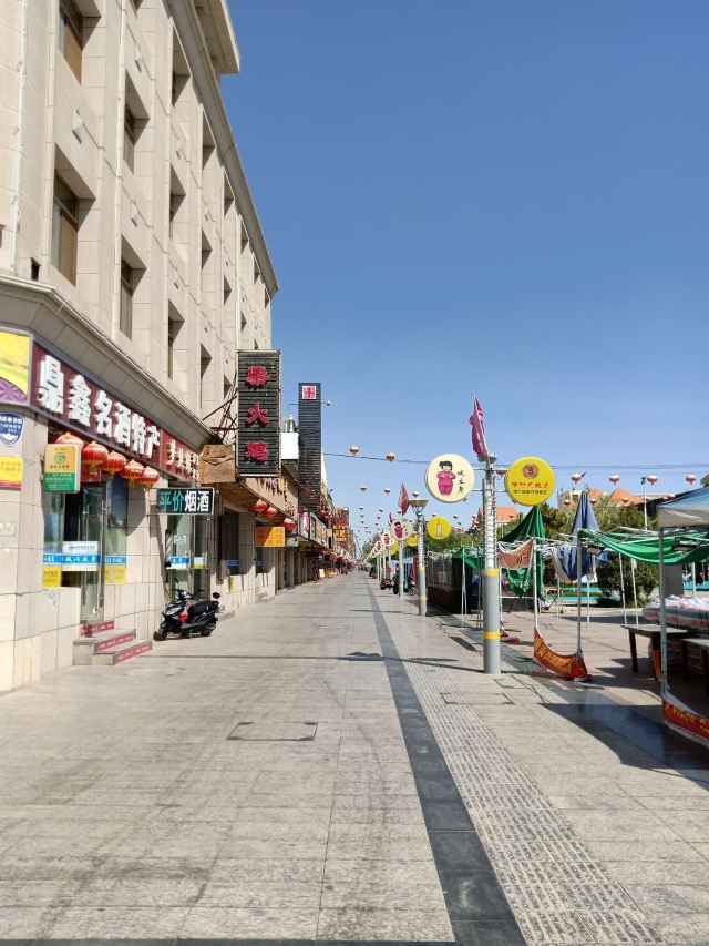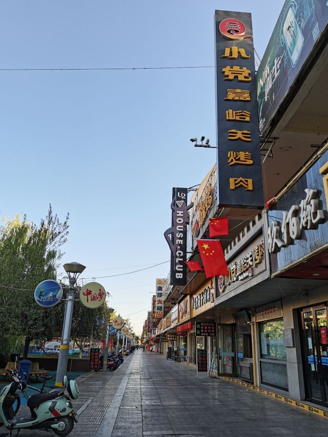 5分 超棒五月的嘉峪关,蓝天白云,清风绿树,槐花飘香,一路芬芳,不热不凉不湿不燥,这个充满奇迹的西部新城散发着独特的魅力,令人心生欢喜。大唐美食街,距离雄关广场两站路,由政府牵头倾力打造,大唐物业统一管理,所有店铺只租不售,布置的整整齐齐,干干净净,美食街只是长方形一条街,两边皆是店铺,餐饮为主,街两端四个角分别是四家酒店,因为是白天,街面安静寂寥,少数几家店正常营业,晚上这里将热闹异常,嘉峪关城市不大,常住人口不多,消费能力非常有限,靠的就是游客,尤其是旅游旺季时,这里日落较晚,从中午到半夜,人声鼎沸,摩肩接踵,忙碌至凌晨是常态,最受欢迎的莫过于烧烤,一桌围坐,几箱啤酒,羊排烤串,吃喝抽侃,日子就像神仙一样滋润啊,不过,客流量大的时候,慢慢烤肯定是来不及的,一条羊腿怕是要烤几个小时呢吧,所以这里的烤是在油炸之后,这样成本低效率高,只是烤生和烤熟味道是绝对不一样的,凡是吃过烧烤的人都懂的。大唐美食街,属于忙一季吃一年,游客吃过就走,好也罢,差也罢,饮食本就众口难调,一言难尽呐,因而,吃的是心情,赚的是忙碌,转身之后也许今生不再相见,既来之则安之,一切都好。