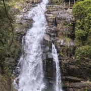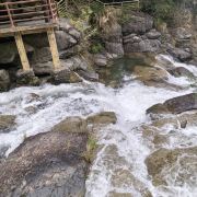 4分 满意风景还是挺不错的,虽然一路台阶,但走得不累,一路逆水而上就是了,大大小小的瀑布很多,当然有名字的五级是最漂亮的。个人觉得最下边相连的斗方崆和三叠的气势最雄伟,而落九天因高度也令人惊叹,飞虹瀑的侧面象极了黄果树瀑布,尤其推荐必须上对面的观瀑楼,能看到彩虹!