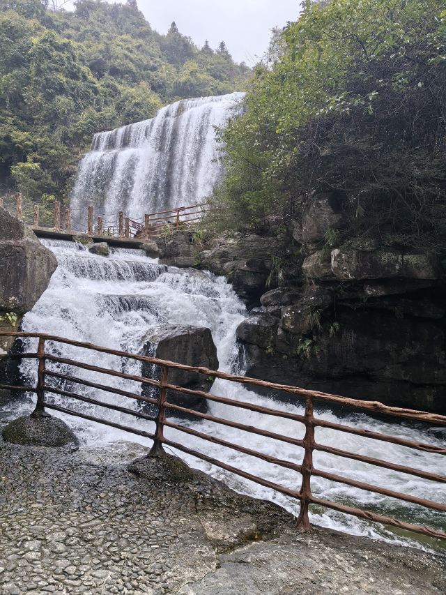 踏入景区,未见瀑布,先闻其声。沿着蜿蜒的步道前行,没一会儿,气势磅礴的飞虹瀑布就映入眼帘,巨大的水帘从百米高空飞泻而下,在阳光的折射下,真能看到绚丽的彩虹挂在瀑布前,这美景简直绝了!再往里走,还有银河瀑布、三叠瀑布等,形态各异,每一处都让人忍不住驻足拍照。