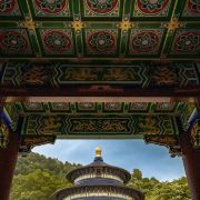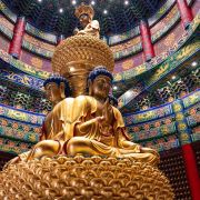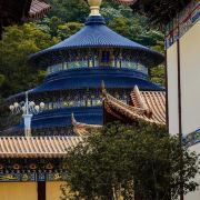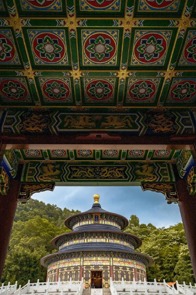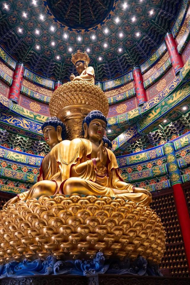 黄龙寺最大的亮点是万佛殿。它的外观跟北京天坛很像,白色的长阶梯,黄龙盘踞的石雕像守护神一样,进到佛殿里,威严的佛像,静静地坐在殿堂中央,感受内心的宁静与平和。