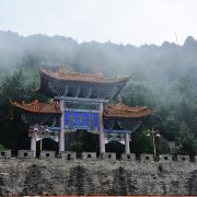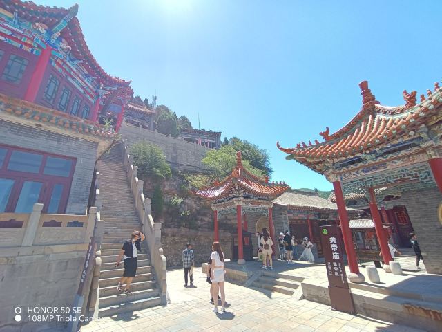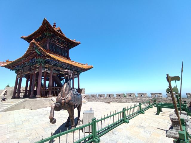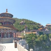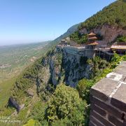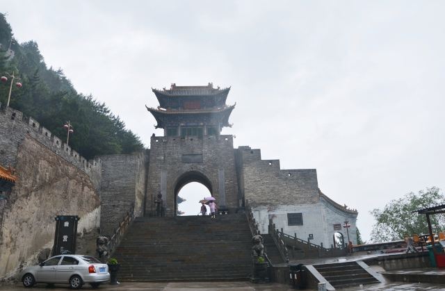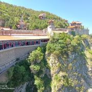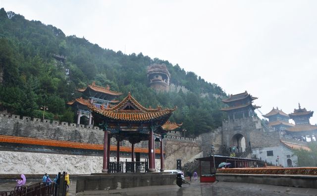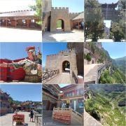 2、龙头寺脚下有“绵山仙境”牌坊(旁边不少石碑)竖在山门,旁边有“《叶剑英论绵山》刻字照壁”、“毓得堂”(内有李世民等名人题刻的小阁楼,但不开放)以及建在悬崖上的小殿宇群(全景区太多小殿,就不一一介绍了),殿宇都安了木栅栏不能进,只能殿外祭拜,殿宇正对着山下广阔的平原。上石梯到“唐营”(李世民曾在这里驻扎对阵宋金刚)城门直行(左拐是“龙涎泉”和“龙脊岭”爬山道,上去就回不来了,走前想清楚),途径“圣迹亭”(内有唐太宗石刻画像,二楼不让上)、“雷神殿”(唐太宗曾来谢雨)、“绵山文化体验馆”(有讲解员引领参观,最后可自愿买祈福牌)、“真武庙”、“关帝庙”(正殿祭拜关羽,两个偏殿祭拜五虎将里其他4位:张飞、赵云、马超、黄忠)以及一些小殿。去山上的龙头需要爬一点山,龙嘴口是个休息台。龙头寺全部走遍拜遍用时1小时。