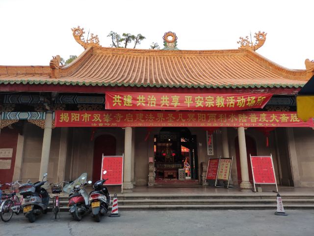 双峰晚钟是揭阳古八景之一,双峰寺为潮汕三大名寺之一(即开元寺、灵山寺、双峰寺),双峰寺旧址在磐溪都之双山,后移于榕城东门之马山巷,为揭阳规模较大之古寺院。