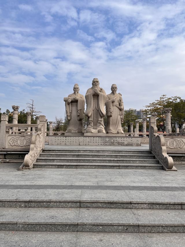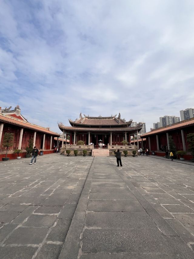 揭阳学宫也叫孔庙,红墙青瓦、雕梁画栋,建筑大气又精美。棂星门、大成门、大成殿依次排列,沿着中轴线漫步,仿佛能听到古代学子的朗朗书声。在大成殿,孔子塑像庄严肃穆,两旁的配祀圣贤像也神态各异。仔细观察那些木雕、石雕,花鸟鱼虫、人物故事栩栩如生,古代工匠的技艺真让人拍案叫绝。建议请个讲解,能更好地了解学宫背后的历史文化,要是觉得费用高,也可以跟着其他团队“蹭听” ,一样能涨知识。