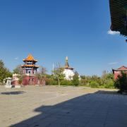吉木萨尔千佛洞坐落在天山北麓距吉木萨尔县城西南5km的黄土岗上。千佛洞呈东西向的长方形,东面有山门。正殿坐西朝东,土木结构,南北两则建有配房,砖木建筑。正殿分前、中、后堂三部分。前堂有丈许高的释加佛像一尊,中堂绘有佛说法图,18罗汉等塑像;后堂有卧佛一尊;三部分紧密相连,构成一个整体。寺院的西南搭有戏台,供庙会组织的戏班所用。