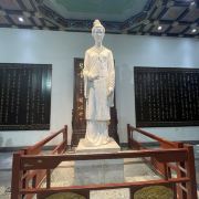 趵突泉-李清照纪念堂,在趵突泉公园北部。1959年在原丁宝祯祠处辟建,1980年改建。李清照(1084~约1155),号易安居士,济南人,宋代杰出女词人,为词坛“婉约派”代表,词作称“易安体”,对后世影响颇大。念堂为传统四合院民居形式。正面对称构图,四周曲廊,回环错落,变化有致。整个建筑采用宋代风格,取其意而不仿其形,体现了女词人所处时代气氛。