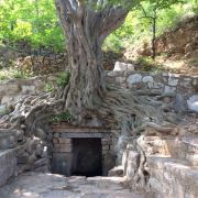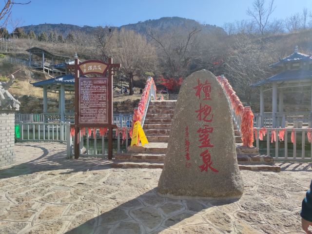 檀抱泉位于济南长清区万德镇灵岩峪中的第四峪村,因山泉被一棵古青檀遮映,树根拥抱而得名。