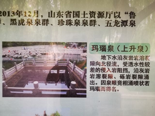 1、“玛瑙泉”位于“黑虎泉泉群”,黑虎泉是济南四大名泉之一,是5A景区“天下第一泉”中的“一河一湖三泉四园”中的三泉之一,位于护城河(即“一河”)东南角,周围公交四通八达,没有专门的停车场开车不太好停。黑虎泉群共有14处泉眼,每个泉眼的泉池几乎都有各种各色的鱼儿作为“常住人口”,每个泉眼也几乎都有钟情于自己的市民来取水,成为一道靓丽的风景。