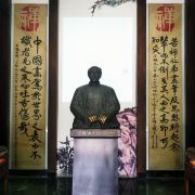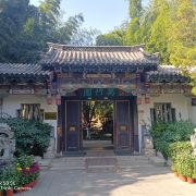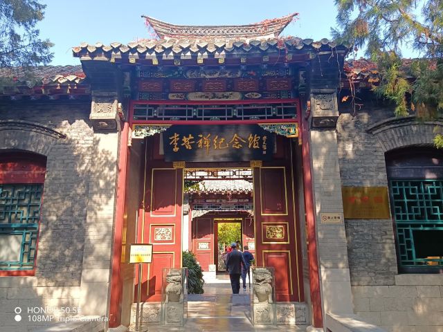 李苦禅纪念馆位于济南趵突泉公园万竹园内,是一座兼有江南庭院与北京王府、济南四合院风格的古式庭院。建筑造型极具汉唐风韵,屋顶为庑殿形式,外墙饰青砖面材。石栏、门墩、门楣、墙面等处,分别有石雕、木雕、砖雕,雕刻细腻逼真,为万竹园“三绝”。