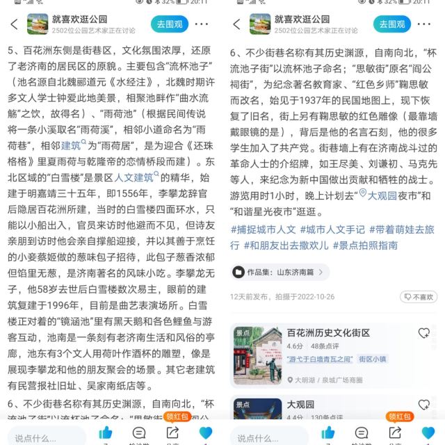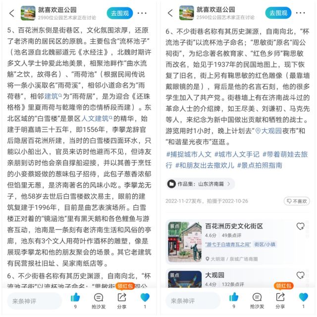 - [5小时前] YoYo** 发表了山东资讯 济南暴走48小时!在人挤人中挖到这些小众机位👀 💡【推荐理由】 济南的夏天是《大明湖的船》+《