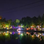 随着夜幕渐渐降临,华灯初上的百花洲变得更加迷人。我们坐在湖边,享受着这份宁静与美好。孩子们依偎在我身边,讲述着他们今天的“重大发现”,笑声回荡在整个街区。